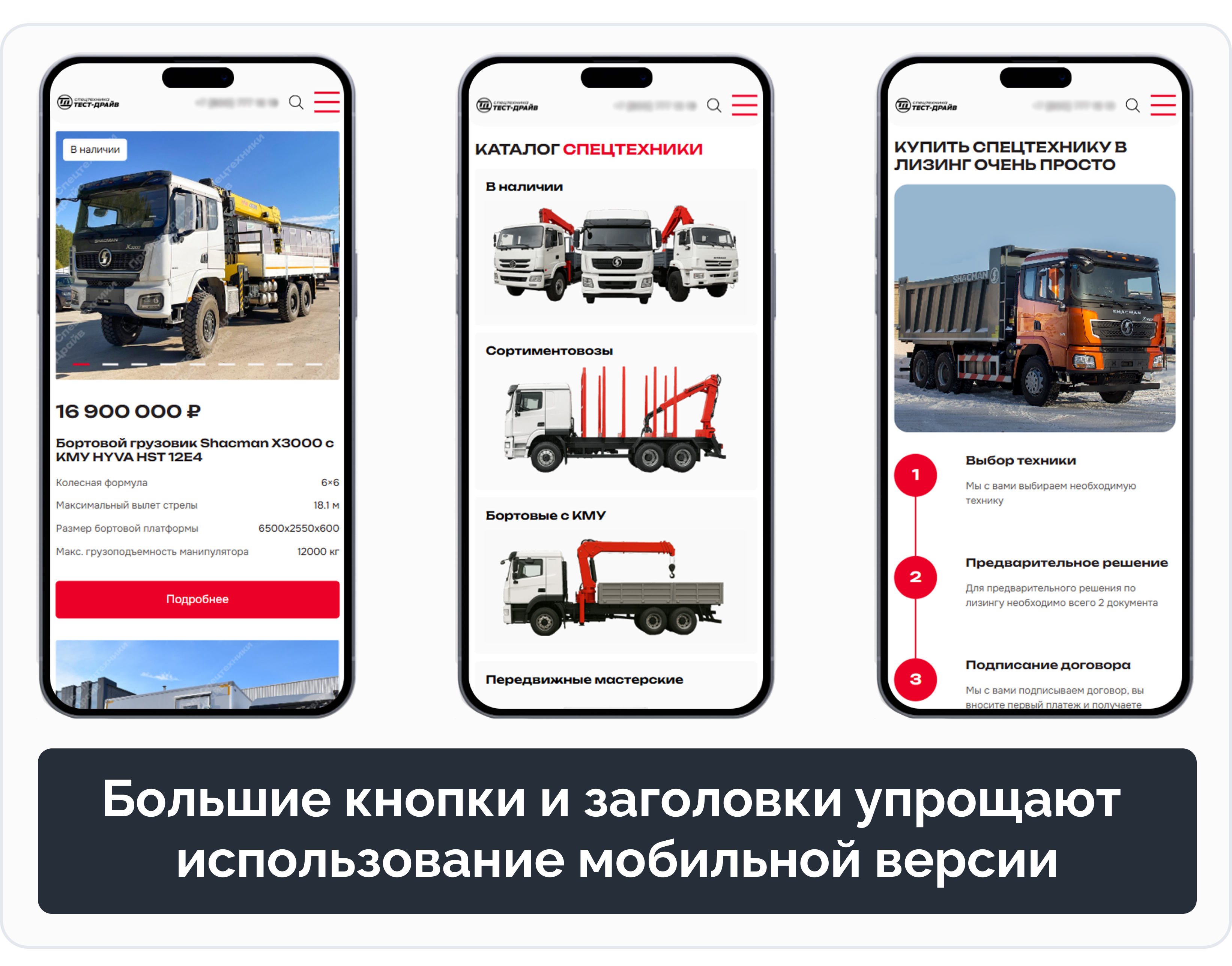 У компании уже был сайт по спецтехнике, поэтому визуальный стиль мы решили оставить узнаваемым. Но над структурой